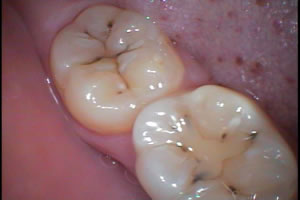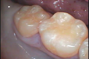 右は昔にレジン(樹脂)充填された歯ですがそのまわりが黒く虫歯になってきています。