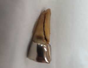 根の治療になった歯は割れる可能性があるので、硬いモノは咬まない! |