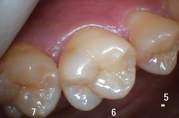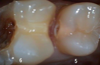 5番目の歯は特に解り難いですが、6番目の歯は「白く」なってますよね!!!