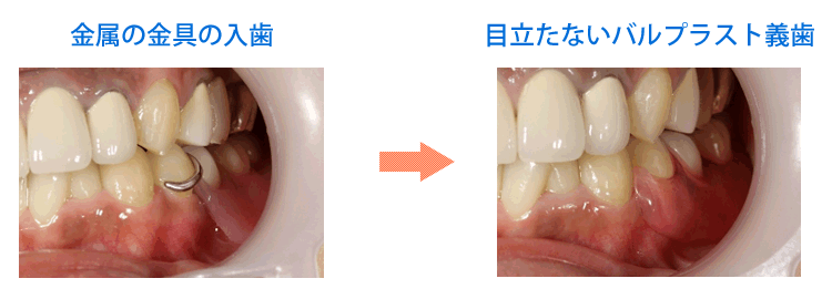 バルプラスト、スマートデンチャーなど種類はいくつかありますが、柔軟な素材の目立たない入れ歯は、装着された患者さまのほとんどが満足しておられます。