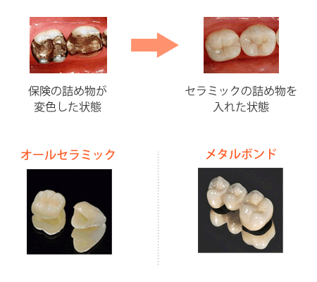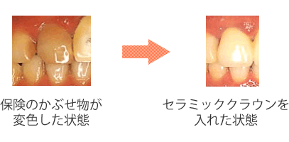 セラミッククラウンは天然の歯に近い色調が得られやすく、変色がおきにくい材質です。 |