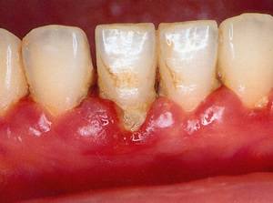 これが最初の兆候です。プラーク、歯石の沈着で歯肉に赤み、腫れ、出血がみられます。